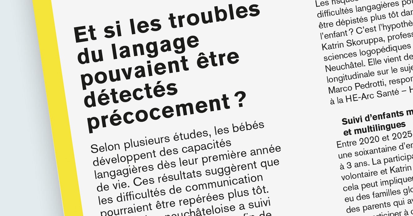 Grâce à de nouvelles méthodes permettant d’explorer le développement du langage chez l’enfant dès la naissance, des scientifiques ont mis en évidence la compréhension de certains mots dès l’âge de 6 à 9 mois. Les risques de développer certaines difficultés langagières pourraient-ils donc être dépistés plus tôt dans la vie de l’enfant ? C’est l’hypothèse formulée par Katrin Skoruppa, professeure à l’Institut des sciences logopédiques de l’Université de Neuchâtel. Elle vient de boucler une étude longitudinale sur le sujet avec l’aide de Marco Pedrotti, responsable de recherche à la HE-Arc Santé – HES-SO.