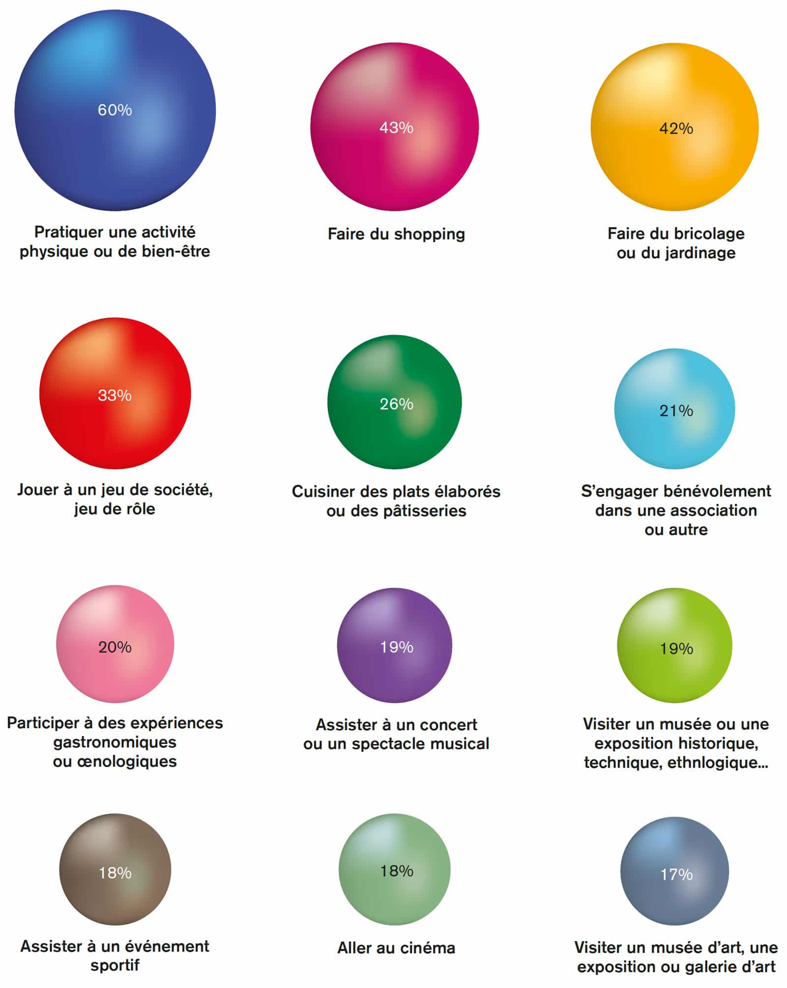 L’étude Culture et Loisirs – Enquête sur les activités des Suisses romandes et romands, publiée en 2025 par l’Observatoire romand de la culture, a analysé un échantillon représentatif de 1000 personnes âgées de 15 ans et plus. L’un de ses volets a identifié les activités culturelles et de loisirs les plus populaires (hors médias) dans une liste de 27 propositions. Les 12 premières vous sont présentées ici.