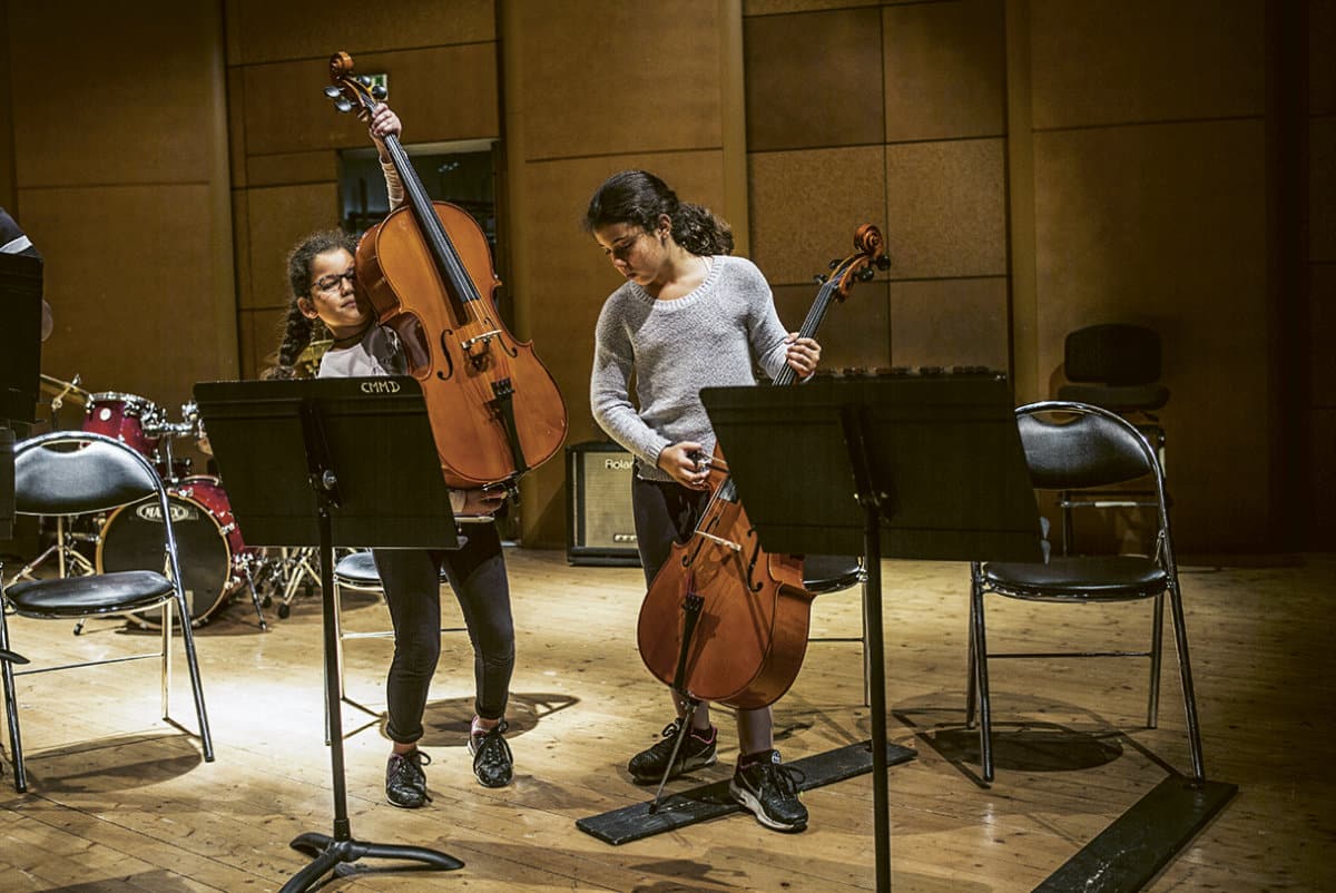 Le projet Dispositif d’éducation musicale et orchestrale à vocation sociale (Démos), lancé en 2010 par la Philharmonie de Paris, vise à rendre la musique classique accessible aux enfants de 7 à 12 ans issus de quartiers prioritaires ou de zones rurales. Pendant trois ans, ces jeunes bénéficient d’un apprentissage instrumental en groupe, encadrés par des musiciennes et des musiciens professionnels ainsi que par des travailleuses et des travailleurs sociaux. À ce jour, plus de 12’000 enfants ont participé à Démos, répartis dans une cinquantaine d’orchestres à travers la France. | © CORENTIN FOHLEN