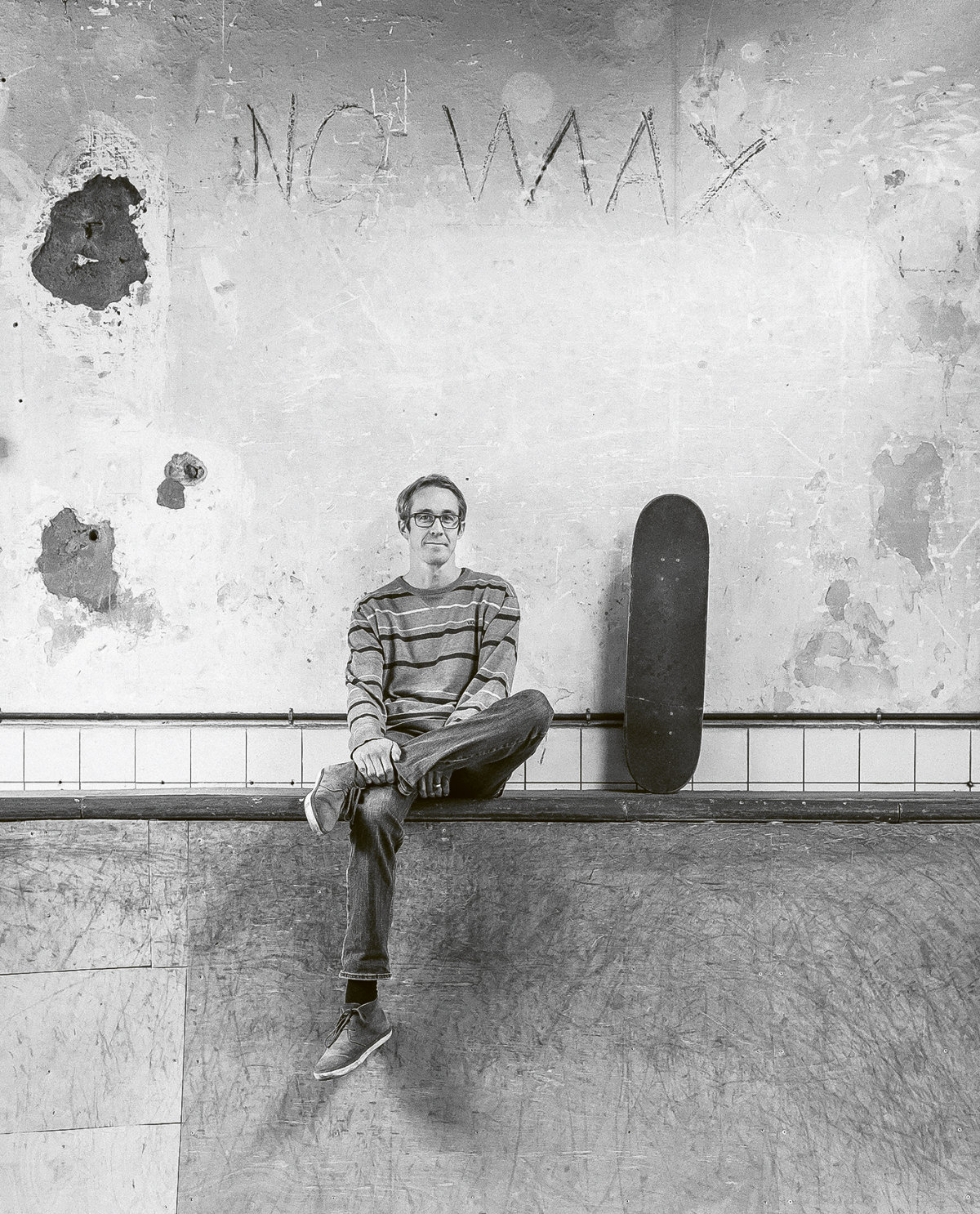 Le chercheur Jérôme Heim est actif depuis bientôt vingt-cinq ans dans le skatepark de La Chaux-de-Fonds, où il a été photographié par Patrice Schreyer. | © PATRICE SCHREYER